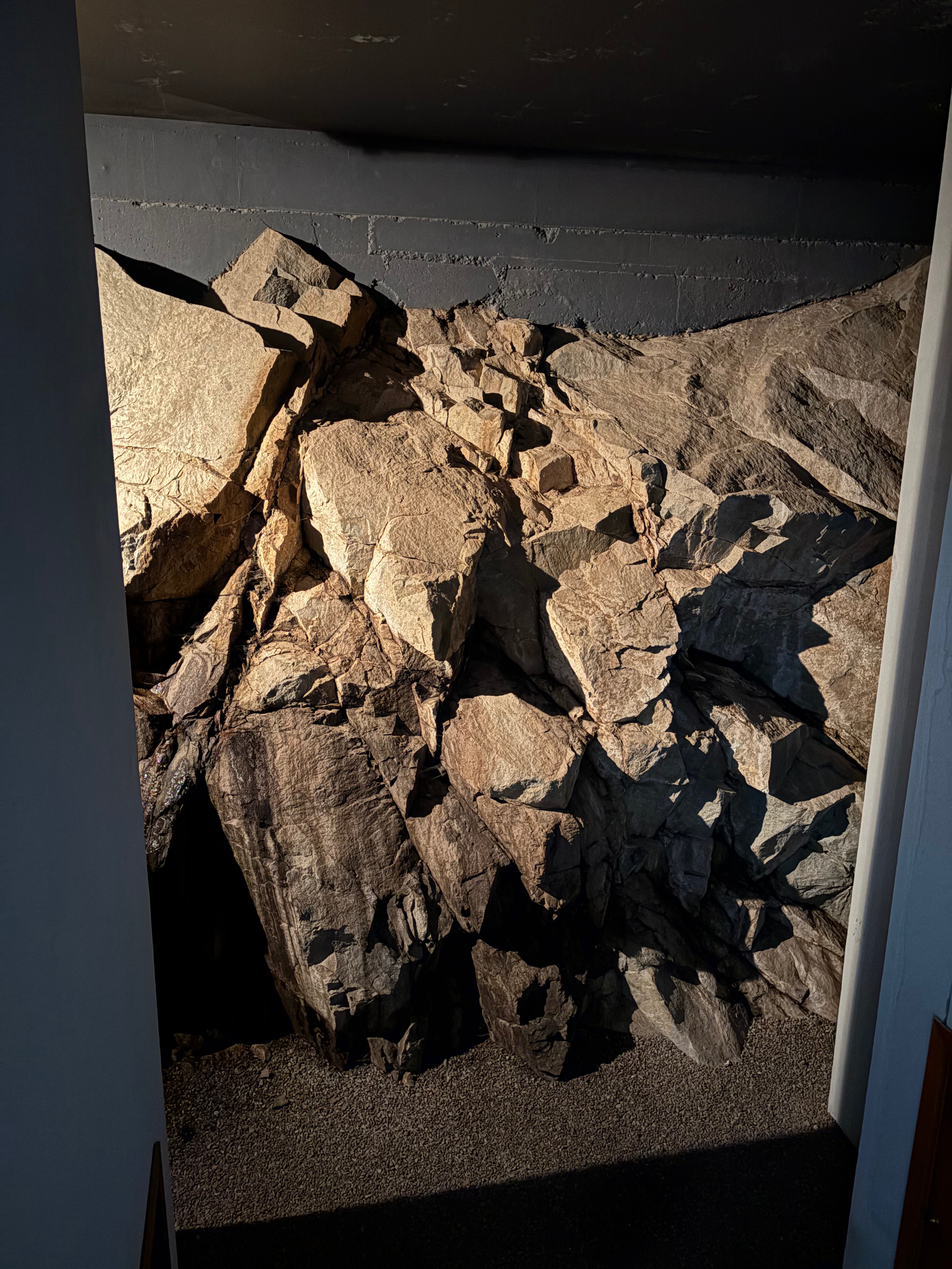 You enter the building on the roof and go down a spiral staircase. You’re now totally in the mountain and can actually touch the granite. Who needs exposed brick when you can have exposed granite.